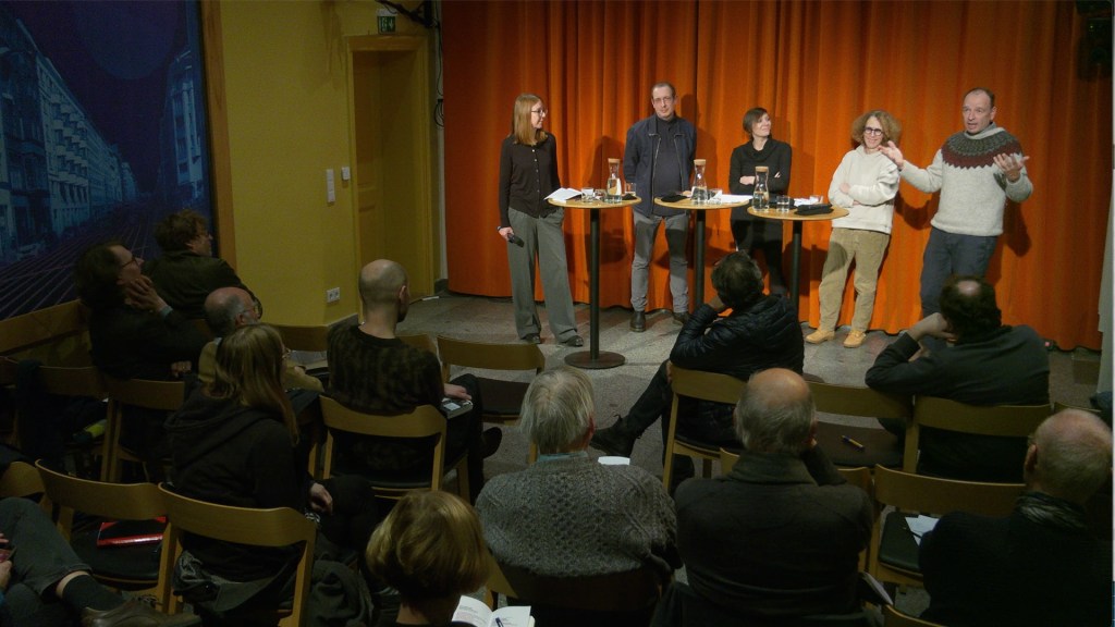 The 6th iteration of the “Baustelle Brecht / Working with Brecht” series took place on 13 December 2024, as usual at the Literaturforum in the Brecht-Haus in Berlin. The topic of this year’s workshop was “Actualizing Brecht: Current and Historical Practice-Theory Structures” (Brecht vergegenwärtigen: aktuelle und historische Praxis-Theorie-Gefüge), initiated by Anja Klöck, Professor of Acting (including Theory and Theatre History) at the Hochschule für Musik und Theater (HMT) Leipzig. The day’s events were organized in cooperation with the Working Group “Acting Theory” of the German Society for Theatre Research and the International Brecht Society. This year’s activities included paper presentations, an artist’s talk, a round table discussion, the performance of a Brecht-project by acting students, and a book launch. A public call for papers, which, as always at the Baustelle, was primarily aimed at young scholars and theatre practitioners exploring innovative approaches in Brecht research. (See program here.)