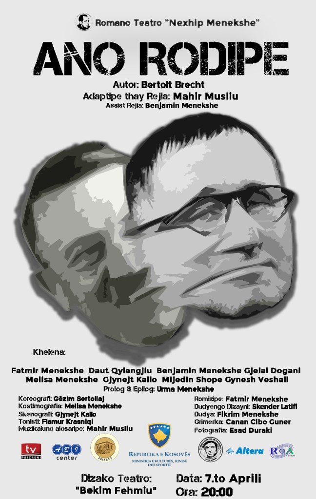 The Romano Teatro Nexhip Menekshe in Prizren, Kosovo, created Ano Rodipe (“In Search”, in Albanian: “Në Kërkim”), an adaptation of three scenes from Bertolt Brecht’s Fear and Misery of the Third Reich – “Judicial Process”, “The Physicist”, and “The Spy” – in the Roma language. The production, directed by Mahir Musliu, premiered on 7 April 2025 at the Bekim Fehmiu Cultural Centre in Prizren.