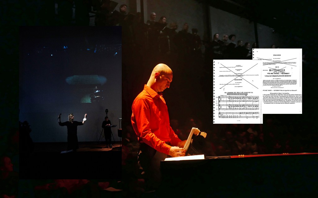 Für den Chor holte er Andrei Kotow, den künstlerischen Leiter des wichtigsten Moskauer Chors für alte, russische, geistliche Musik, des Sirin-Ensembles. Dazu fand uns Tatjana Schepatowa, die aus eben der Vorstadt kam, in die Brecht und Eisler mit dem Stück erst gingen, nachdem Hindemith sie rauswarf. Sie fand auch die 7 Moskauer Chöre, zu denen wir dann zu viert fuhren, um mit ihnen zu sprechen. Mit den Stimmen aus der alten geistlichen Tradition wurden sie zu einem fantastischen Chor, ohne Dirigat im klassischen Sinne.