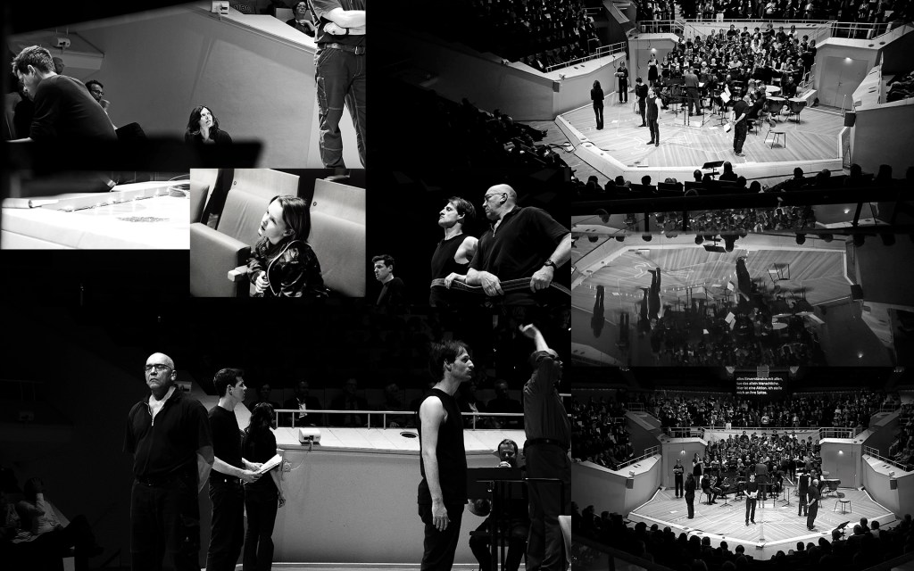 Jetzt arbeiteten in fliegender Hast viele fliegende Hände, wirklich viele fliegende Hände. In dieser Arbeit gab es keinen einzigen Streit wegen Geldes, keinen Dünkel. Für sowas hatten wir in der kurzen Zeit alle keine Kraft und kein Interesse. Die zehn Chöre kamen in nur 3 Proben im großen Foyer des Russischen Hauses in der Friedrichstraße zusammen; das Orchester hatte 2008 schon 40 Vorstellungen in der Volksbühne gespielt und brauchte nur zwei Proben; die SchauspielerInnen kamen aus dem Umfeld, in dem ich gelernt habe, wir probten 5 Tage in einem kleinen Raum in Kreuzberg. In der Generalprobe in der Philharmonie am Morgen vor der Premiere kamen zum ersten Mal alle zusammen. Und am gleichen Aprilabend fand die Premiere statt.